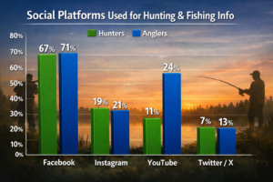Same report also shows where they go for info in general: Google/search engines (39%) and state fish & wildlife sites (22%) are big, meaning “social” is not the only funnel.